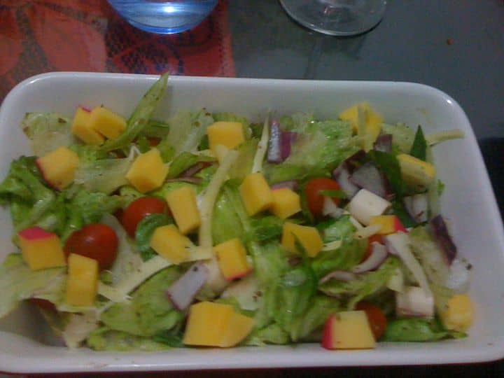 Obs. Na Salada Grega geralmente utiliza-se o pepino japonês e azeitonas que nesta receita foram substituido por alface e palmito!