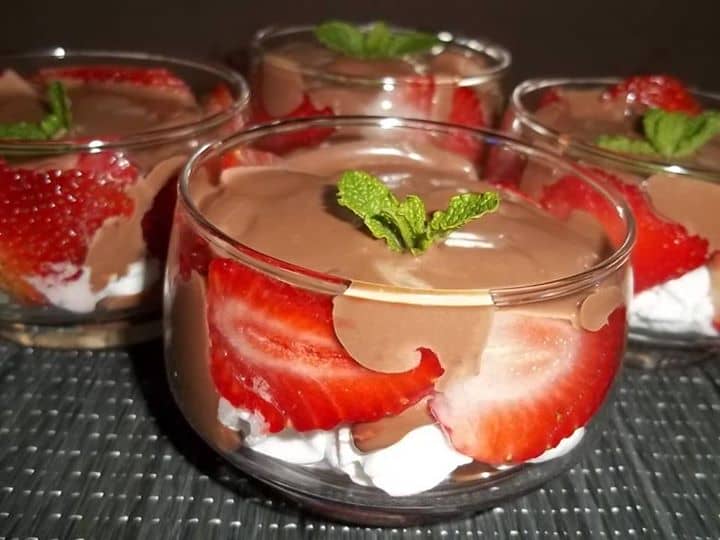 Acrescentar morangos fatiados ou picados, Levar ao micro-ondas por 1 minuto ou derreter em banho maria o chocolate picado