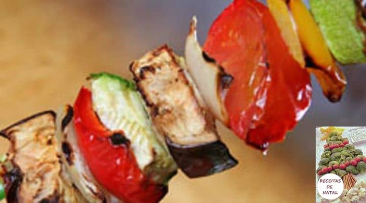 Coloque os ingredientes alternadamente até encher o espeto. Coloque no grelhador e vai virando até grelhar.