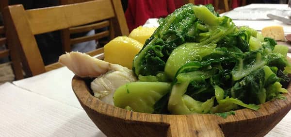 Escalfe o bacalhau e limpe-o de peles e espinhas. Coe e utilize a água do bacalhau para cozer as folhas de couve inteiras. Reserve.
