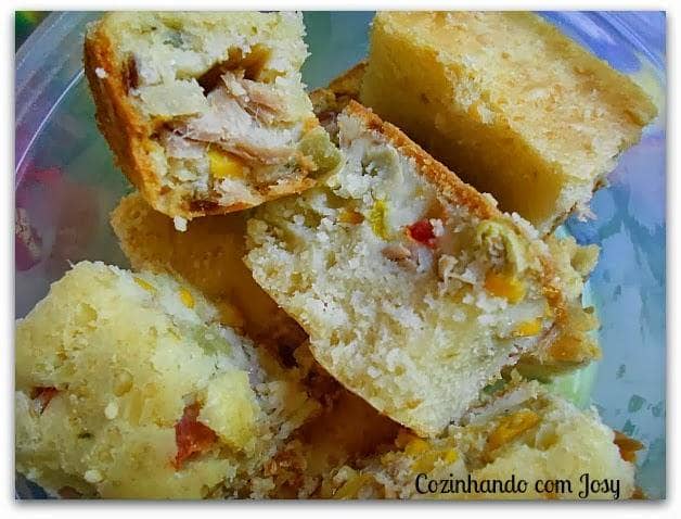 Leve para assar em forno pré-aquecido a 180°C até dourar. Retire do forno, espere amornar, e corte em quadradinhos.