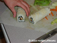 O rolo completo pode ser coberto com sementes de gergelim ou outra guarnição antes de fatiar.