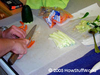 As fotos e instruções abaixo vão mostrar como criar algumas das variedades mais comuns de sushi. Para a cobertura, vamos usar cenoura fatiada, abacate e pepino.