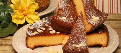Deite a mistura anterior para a forma e leve ao forno durante 1 hora. Verifique a cozedura com um palito, retire, deixe arrefecer um pouco, desenforme, regue com a calda do ananás, deixe arrefecer totalmente e sirva decorado a gosto. Pode polvilhar com amêndoa laminada ou açúcar em pó.