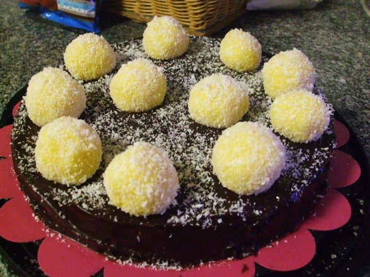 Levar tudo a lume brando até engrossar e começar a despegar do tacho. Levar esta mistura ao frigorífico pra solidificar. Depois forme bolinhas com as mãos e passe-as pelo côco ralado. Leve ao frigorifico de novo para solidificar.