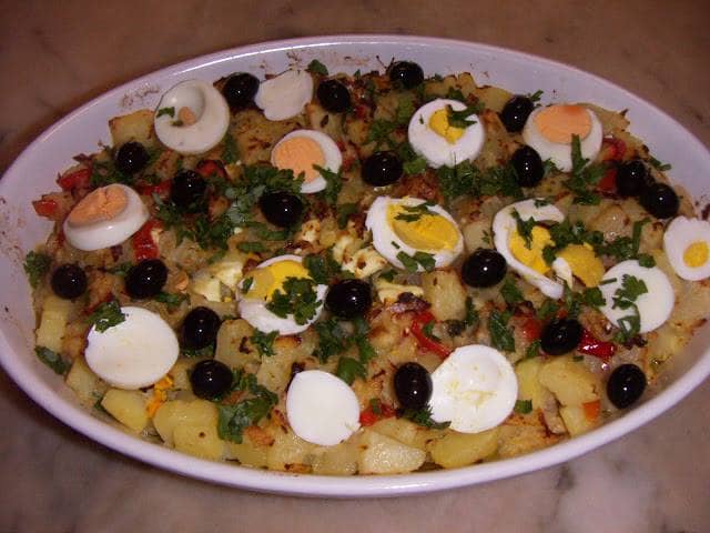 Bacalhau gratinado com creme de mandioca