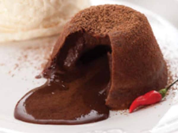 Petit Gâteau Apimentado ingredientes 1 lata de leite condensado 1 lata de creme de leite 2 ovos 4 gemas 1 pimenta dedo-de-moça sem sementes, picada 1 xícara (chá) de chocolate em pó manteiga para untar farinha de trigo para polvilhar chocolate em pó para polvilha modo de preparo Em um recipiente, misture o leite condensado…
