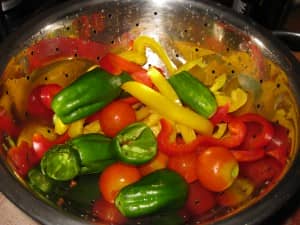Receita de Pickles Pimentos verdes dos pequenos, pimentos amarelos ás tiras, pimentos vermelhos ás tiras e tomates cereja. Arranjar e lavar muito bem. Escorrer e reservar. Couve flor